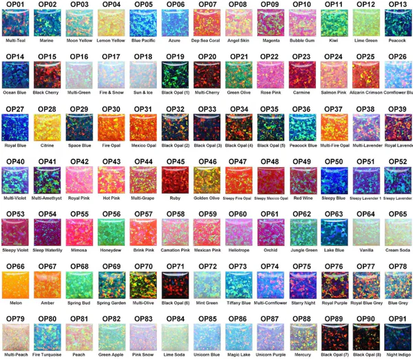 Use the opal color chart to specify which color you want under “Customizations”. Opal colors can vary based on the batch and where the stone was cut. The color chart is for reference only, and actual colors may differ slightly.
