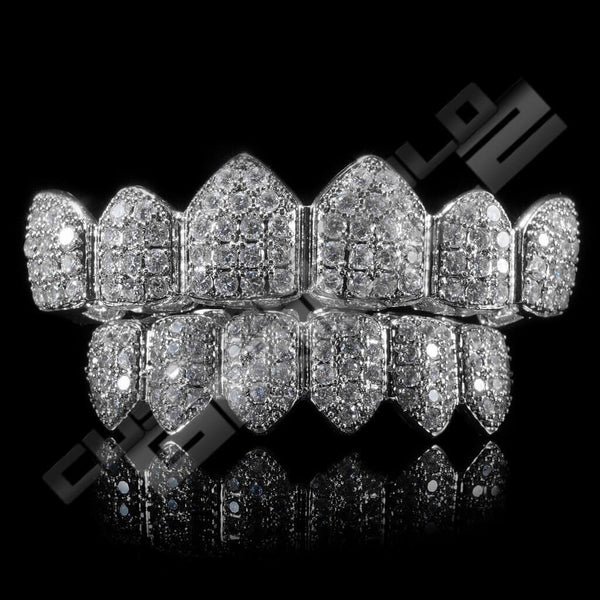 Don’t want to break your budget but want an icy grill? Our Pre-made white gold plated CZ grillz is the one for you! This set is an absolute steal. Make this a part of your signature look – wear it all day everyday!