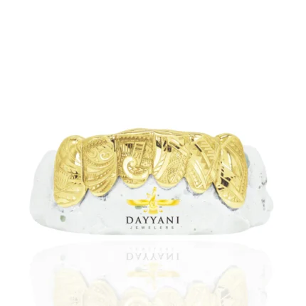 Custom Grillz with Tribal Engravings Gold Grillz